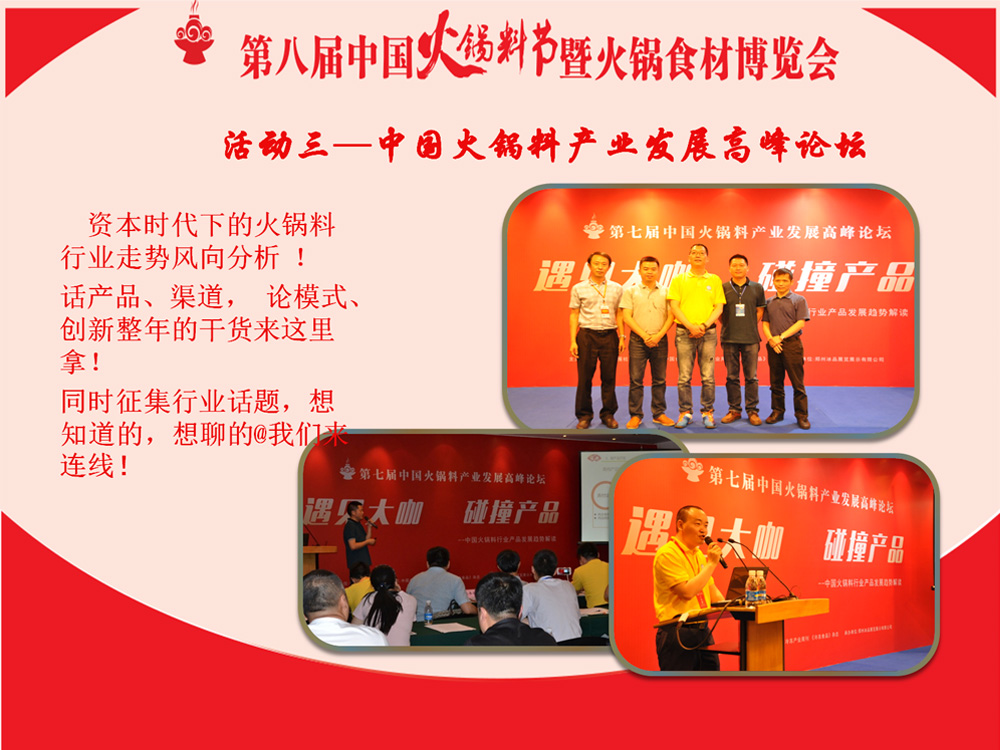 如何改變公眾消費者對火鍋料產(chǎn)品的認(rèn)知?如何在消費升級、需求多元化的大環(huán)境下精耕細(xì)作,多渠道經(jīng)營?如何在注重食品安全和生活品質(zhì)的前提下做好“蒸煮煎炸的跨界火鍋料產(chǎn)品”?傳統(tǒng)美食工業(yè)化設(shè)備企業(yè)又將迎來怎樣的創(chuàng)新?原輔料企業(yè)又將為產(chǎn)品升級提供怎樣的助力?資本時代下的火鍋料產(chǎn)業(yè)又將迎來怎樣的變革?新競爭時代,火鍋料食材又該迎來一個怎樣的定義?