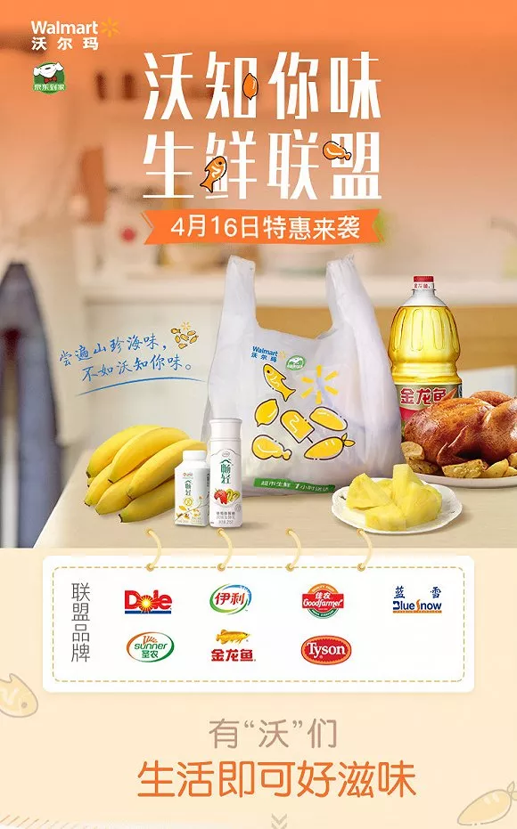 4月16日,沃爾瑪聯(lián)合京東到家、泰森、伊利、都樂、圣農(nóng)、藍(lán)雪、佳農(nóng)、金龍魚等七大生鮮商品供應(yīng)商,成立了“生鮮聯(lián)盟”。沃爾瑪表示,未來(lái)會(huì)有更多供應(yīng)商將加入其中。