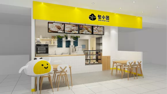 迎合年輕人的喜好,改變了品牌調(diào)性的“包小團”,打出了“包子界最有根兒的潮牌”的口號。從漫畫風格的LOGO、到以黃、白兩色為主的店面設計,都在營造小清新的用餐氛圍。
