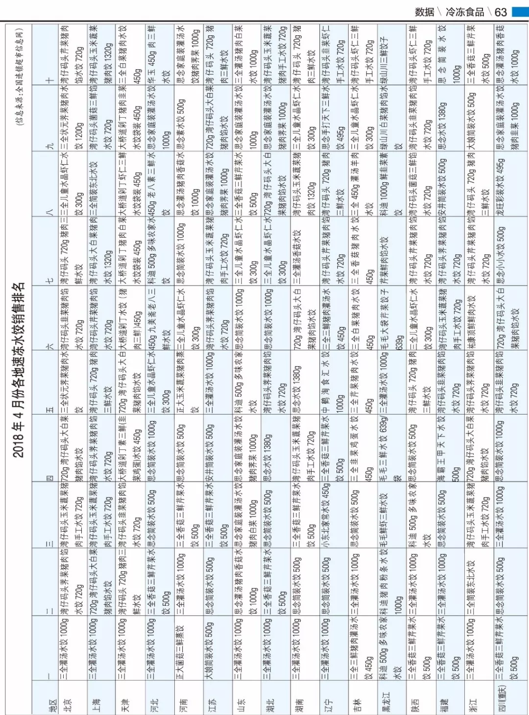 來源: 冷凍食品網(wǎng) 發(fā)布者:編輯▼2018年4月份各地速凍水餃銷售排名
