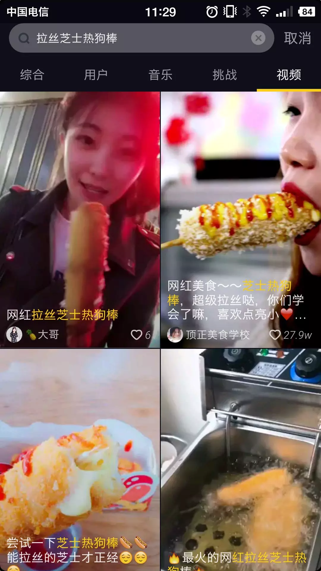 打開(kāi)抖音,輸入關(guān)鍵詞“拉絲芝士熱狗棒”,由來(lái)自全國(guó)各地的美食愛(ài)好者們分享的教學(xué)視頻就會(huì)出現(xiàn)在下面。在這些時(shí)長(zhǎng)15秒的短視頻中,分享者們會(huì)提前準(zhǔn)備好各種材料,然后步驟清晰、手法熟練地演示制作方法,整個(gè)過(guò)程看上去簡(jiǎn)單易學(xué),即使“廚房黑洞星人”也能快速上手。