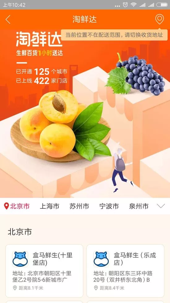 來源: 冷凍食品網(wǎng) 發(fā)布者:編輯主打生鮮百貨1小時送達(dá)的淘鮮達(dá)目前已開通125個城市,上線422家門店。