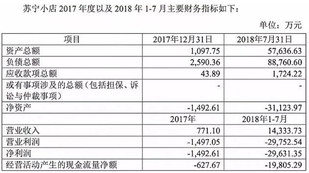 從其公告中披露出的最新業(yè)績來看,該筆增資對蘇寧小店十分重要。數(shù)據(jù)顯示,蘇寧小店2018年1至7月營收1.43億元,虧損2.96億元,債務(wù)高達6.53億元。股權(quán)轉(zhuǎn)讓的前提,即蘇寧易購清理掉此債務(wù)。此次將蘇寧小店業(yè)務(wù)剝離出上市公司,也是防止未來蘇寧小店擴張造成的虧損影響到上市公司的業(yè)績。
