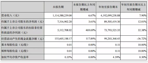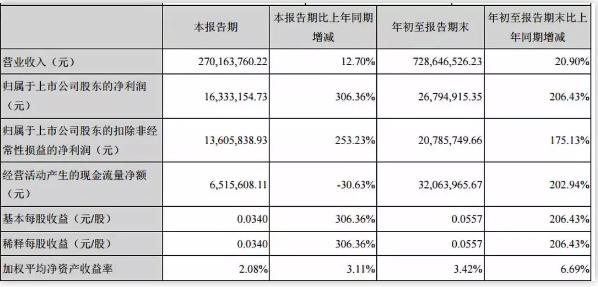 ▲惠發(fā)股份前三季度業(yè)績(jī)圖