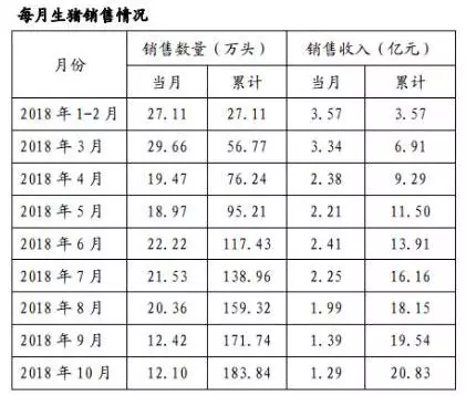 由于“非洲豬瘟”疫區(qū)封鎖、禁運(yùn)等因素,雛鷹農(nóng)牧生豬銷(xiāo)售價(jià)格及數(shù)量均低于預(yù)期。根據(jù)其10月銷(xiāo)售簡(jiǎn)報(bào),雛鷹農(nóng)牧9月、10月的生豬銷(xiāo)量均只有12萬(wàn)頭左右,較1月至8月的銷(xiāo)量大幅下降,對(duì)公司盈利能力造成較大的影響。