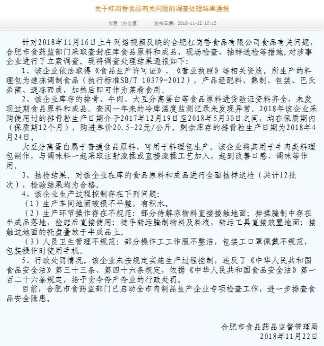 來源: 冷凍食品網(wǎng) 發(fā)布者:編輯昨天上午,合肥市食品藥品監(jiān)督管理局發(fā)布了《關(guān)于杠崗香食品有關(guān)問題的調(diào)查處理結(jié)果通報》。