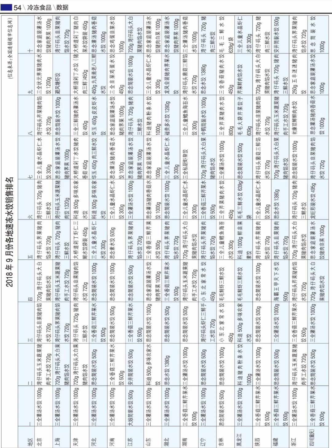 今年9月份各地速凍水餃銷售排名揭曉,從中我們能看出一些市場(chǎng)特點(diǎn):