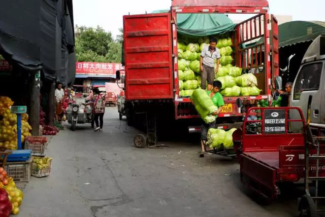 批發(fā)商一代憑實(shí)干贏得了天下,年輕的二代接過父輩的擔(dān)子登上舞臺。圖為水果蔬菜商戶在忙碌