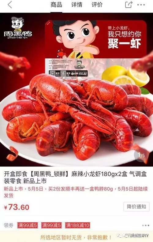作為鴨脖界三大巨頭之一的周黑鴨去年推出“聚一蝦”品牌介入小龍蝦領(lǐng)域,該產(chǎn)品僅銷售三個月就下架,不過周黑鴨并沒有放棄小龍蝦市場。