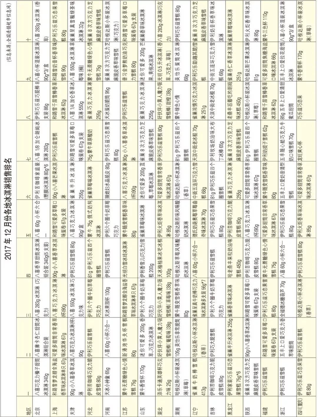 來(lái)源: 冷凍食品網(wǎng) 發(fā)布者:編輯▼2017年12月份各地冰淇淋銷售排名