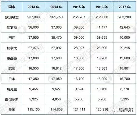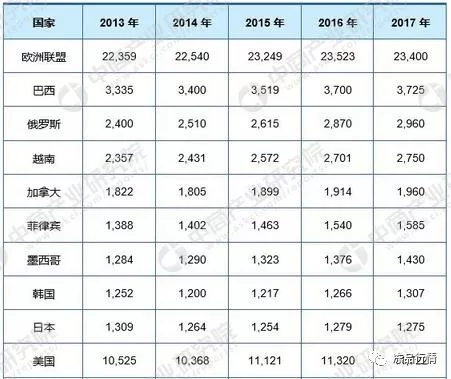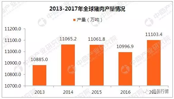 2013-2017年全球豬肉產(chǎn)量分國家統(tǒng)計(jì)表(千噸)