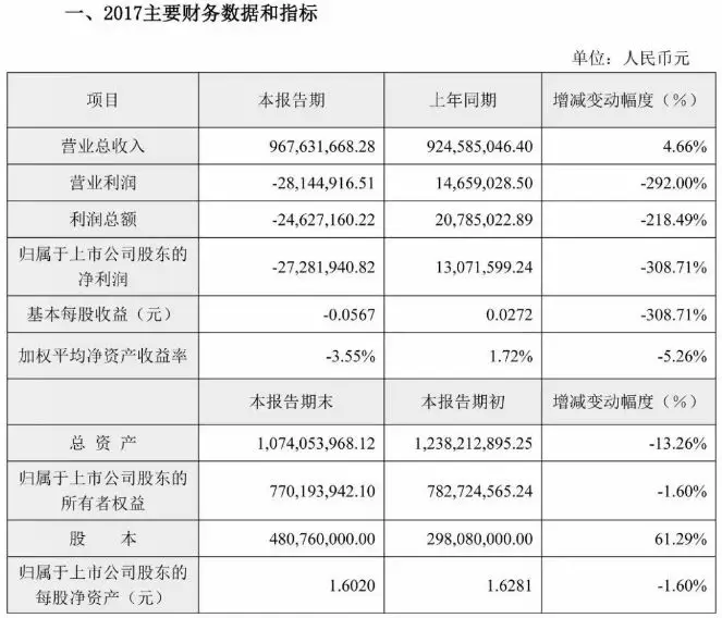 據(jù)快報(bào)中稱(chēng),凈利潤(rùn)大幅下降的主要原因是2017年度終止限制性股票激勵(lì)計(jì)劃產(chǎn)生管理費(fèi)用2090.70萬(wàn)元,以及計(jì)提參股公司上海貓城電子商務(wù)股份有限公司長(zhǎng)期股權(quán)投資減值準(zhǔn)備1,229.37萬(wàn)元。
