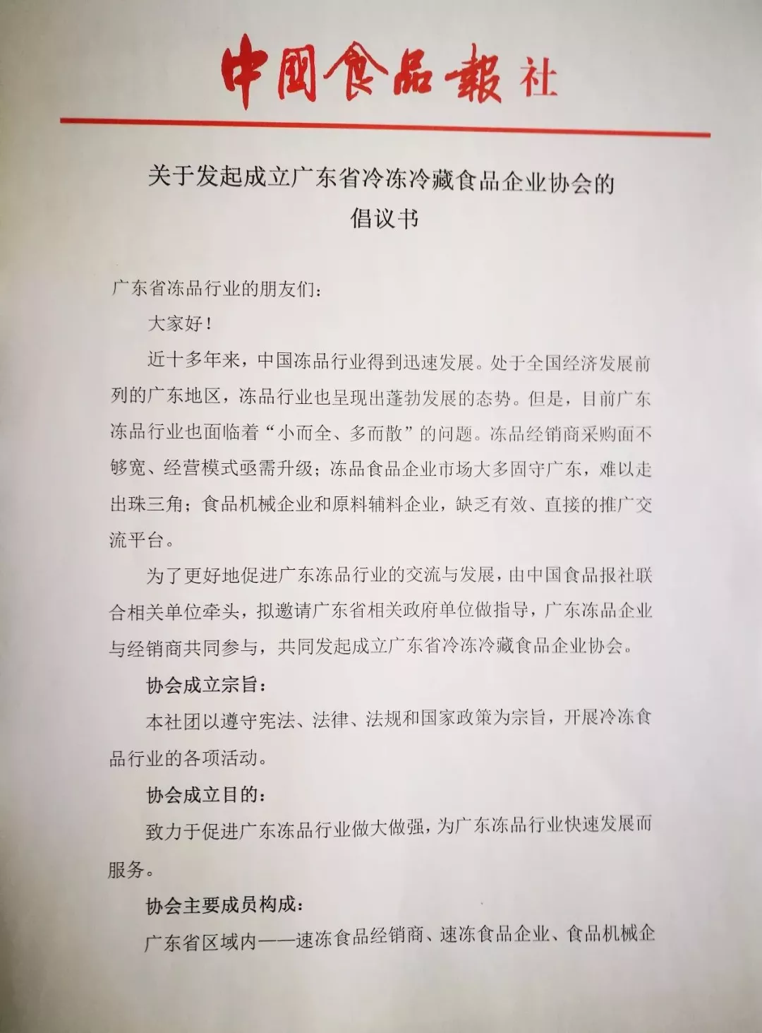 由《中國(guó)食品報(bào)》《現(xiàn)代食品》雜志社牽頭,擬邀請(qǐng)廣東省相關(guān)政府單位做指導(dǎo),廣東凍品企業(yè)與經(jīng)銷商共同參與,共同發(fā)起成立廣東省冷凍冷藏食品企業(yè)協(xié)會(huì)。