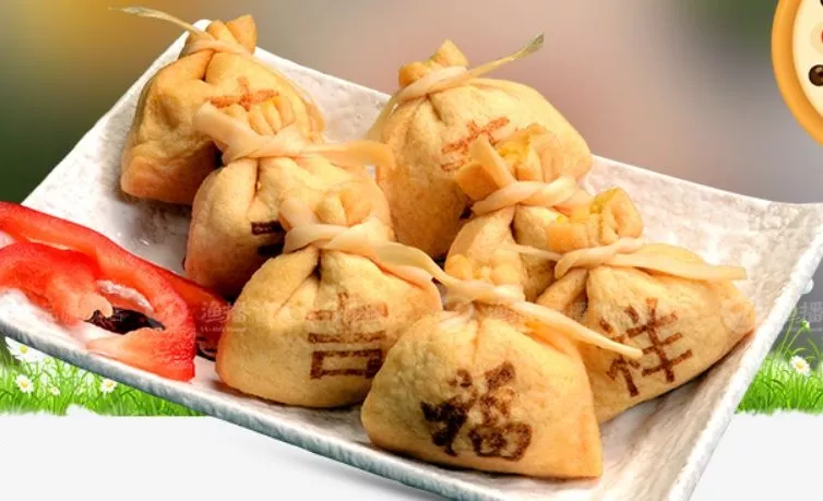 金黃色的小袋子裝得鼓鼓囊囊,有的還會印上“吉”“祥”“如”“意”“福”等字樣。袋口被綁著,里面裝了啥誰也不知道,一口咬下去,鮮美的滋味瞬間給人帶來巨大驚喜。它的功能性也非常強,可用于火鍋、關(guān)東煮、麻辣燙、高端餐廳配菜等。