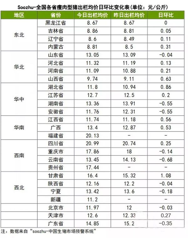 二:內(nèi)蒙古外三元指導(dǎo)價(jià)為9.2元/公斤,安徽為11.9元/公斤,廣東為17.8元/公斤。