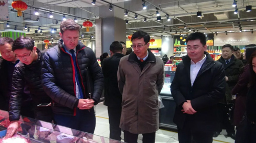 啟動儀式之后,樊偉龍陪同劉孟澤、韓振岐等領導,共同參觀了城鄉(xiāng)超市中澳洲冰鮮牛肉的銷售排面,來自大洋彼岸、原包原味的澳洲冰鮮牛肉吸引了大家的注意。