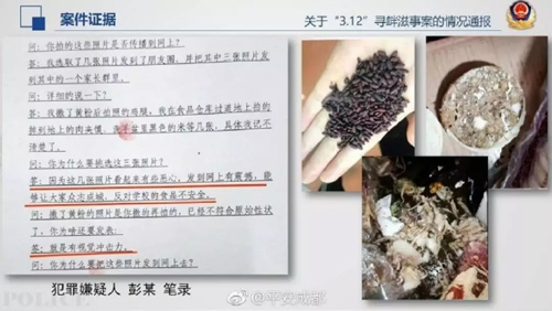 3月17日,記者從成都市公安局了解到,經(jīng)過深入調(diào)查,通過現(xiàn)場監(jiān)控,當(dāng)事人手機(jī)照片電子比對,以及當(dāng)事人供述,警方初步確定“變色”雞腿,“發(fā)霉”毛肚等“問題食品”均是人為。目前已有3名嫌疑人被警方控制調(diào)查。