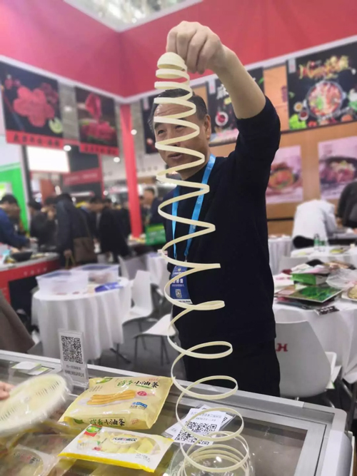 在展會上,火燒饃、卡通面點(diǎn)、蒸餃等米面產(chǎn)品也吸引了眾多觀展人員關(guān)注。