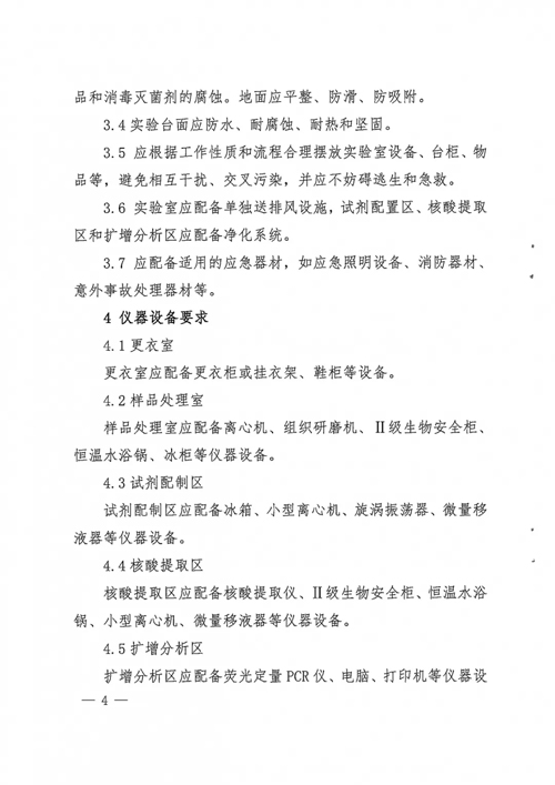 實(shí)驗(yàn)室在儀器設(shè)備方面:應(yīng)配備離心機(jī)、核酸提取儀、熒光定量PCR儀等;
