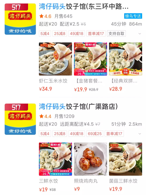 灣仔碼頭不僅在超市賣“生餃子”,更是在餓了么上開了幾十家水餃店,開始賣“熟餃子”。