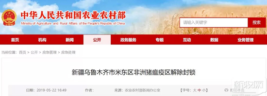 新疆烏魯木齊市米東區(qū)非洲豬瘟疫區(qū)解除封鎖