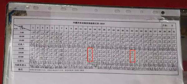 從超市冷藏冷凍設(shè)備溫檢記錄表中也可以看出,最低溫度為-21℃,最高溫度在-15℃,兩者溫差達(dá)6℃。