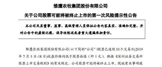 把豬餓死的養(yǎng)豬第一股 *ST雛鷹可能退市