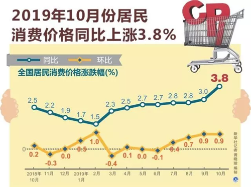 11月9日,國(guó)家統(tǒng)計(jì)局發(fā)布數(shù)據(jù)稱,10月份,全國(guó)居民消費(fèi)價(jià)格(CPI)同比上漲3.8%,漲幅比上月擴(kuò)大0.8個(gè)百分點(diǎn)。