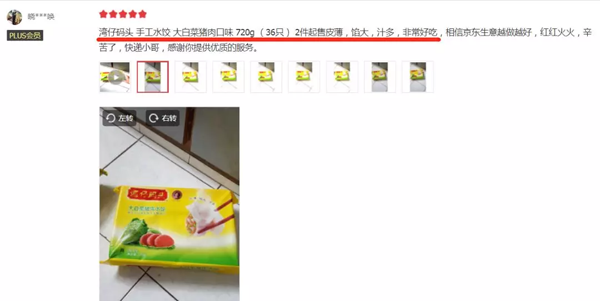在“雙11”購物狂歡節(jié)上,灣仔碼頭玉米豬肉水餃一舉沖上京東冷凍冷藏單品第一名。從評價來看,消費者的滿意度也很高: