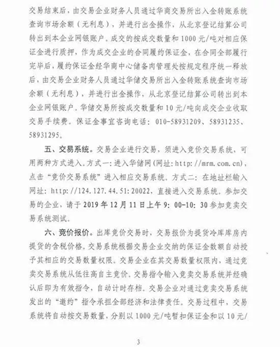 值得注意的是,《通知》提到,在12月12日競價(jià)成交后,成交企業(yè)不得借機(jī)囤積,必須交易成交后一個(gè)月內(nèi)將儲(chǔ)備肉賣給終端用戶。