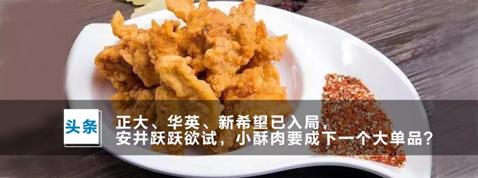 洛陽正大食品將酥肉產品工業(yè)化,在確保菜品口味穩(wěn)定、工藝穩(wěn)定的前提下,也有效避免了小作坊式手工生產帶來的食品安全問題。與此同時,華英、新希望六和等巨頭也入局了小酥肉市場。