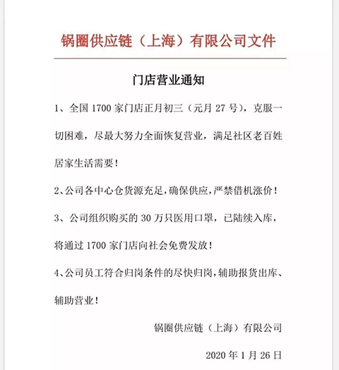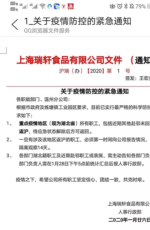 上海瑞軒食品有限公司則針對疫情下發(fā)了緊急通知。