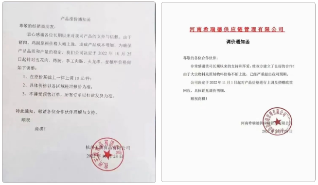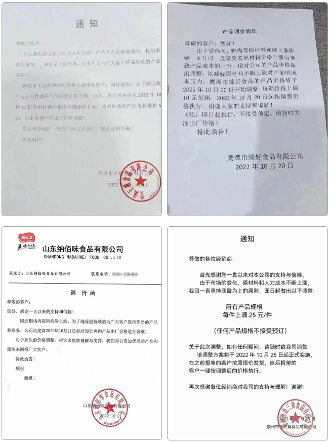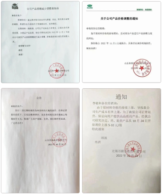 原輔料普漲,凍品企業(yè)紛紛發(fā)布調(diào)價函
