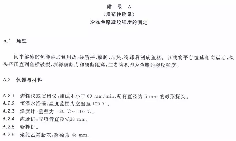 第四,規(guī)范性附錄中有關(guān)冷凍魚糜凝膠強(qiáng)度的測定,唯一值得商榷的是“斬拌機(jī)”。實(shí)踐中,魚糜實(shí)驗(yàn)用“斬拌機(jī)”的類型不同,對魚糜凝膠性數(shù)據(jù)影響較大。使用不同類型的“斬拌機(jī)”做實(shí)驗(yàn),很容易引起供銷雙方對質(zhì)量數(shù)據(jù)的質(zhì)疑。