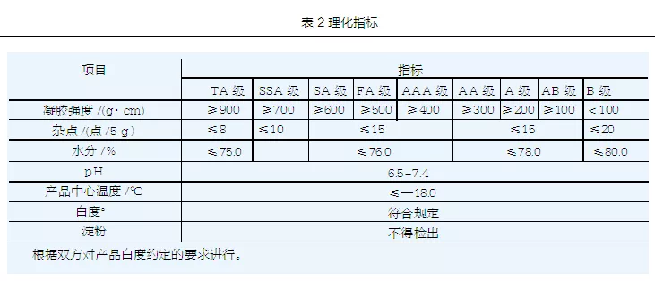 第三,魚糜新國標(biāo)對魚糜理化標(biāo)準(zhǔn)的規(guī)定比較寬松,主要表現(xiàn)在魚糜水分含量和雜點(diǎn)數(shù)上。比如A、AA級魚糜的水分含量不超過78%,雜點(diǎn)數(shù)不高于15個(gè)。而實(shí)際生產(chǎn)中,AA級魚糜的水分一般要控制在76%左右,A級魚糜水分不超過77%。