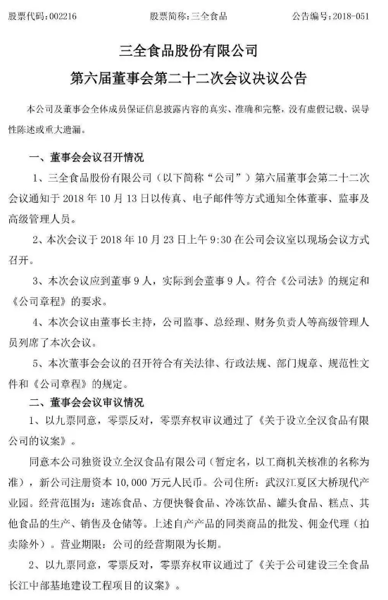 三全食品在公告中稱,此次對外投資符合公司長期發(fā)展戰(zhàn)略,若該項目實施,將會有效降低物流成本、采購成本。