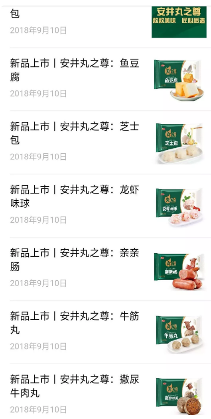 2018年8月27日,安井食品微信公眾號(hào)推送《丸之尊,全新上市!》一文,以“每一顆丸子都不將就”為口號(hào),推出魚(yú)籽包、魚(yú)豆腐、芝士包、龍蝦味球、親親腸、撒尿牛肉丸、牛筋丸等多款全新升級(jí)產(chǎn)品。