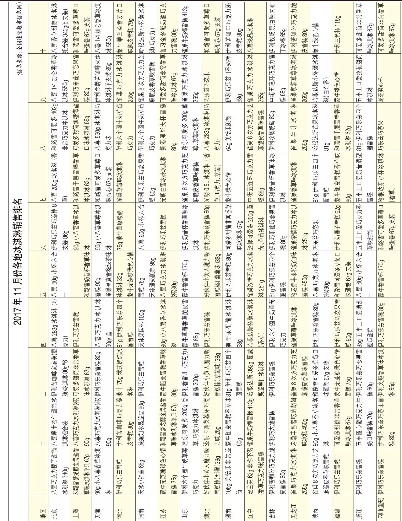 來源: 冷凍食品網(wǎng) 發(fā)布者:編輯▼2017年11月份各地冰淇淋銷售排名